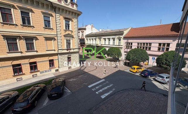 Reality Kolesár vám ponúka na prenájom reprezentatívny priestor 163 m2 spojený z 58 m2 a 105 m2 v centre mesta na Mlynskej ulici. Administratívne priestory sú na 1. poschodí, okno smerom na západ, Puškinovu ulicu, kazetový strop, podklad keramická dlažba, internet, vzduchotechnika, klimatizácia, LED osvetlenie, kancelárie majú presklené kóje s hliníkovým rámom, kuchynku, recepciu, archív, zasadačku, prístup na terasu. Cena : 2445,-€/ mesačne t.j. 15,00 eur bez DPH za m²/mesiac + energie. V prípade záujmu volajte, píšte 0907 915 475 kolesar@realitykolesar.sk – Tomáš Kolesár. /REALITY KOLESÁR 24 ROČNÁ PRAX/.