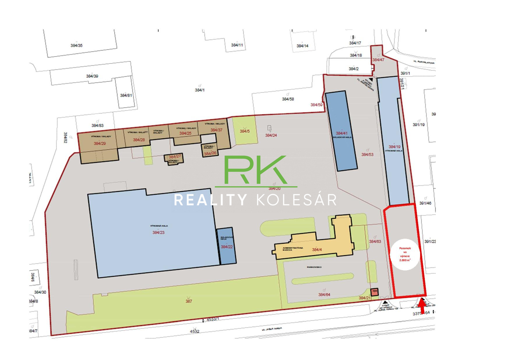 RealityKolesár prenajíma Pozemok parcelné číslo 384/53 vo výmere 2.000 m2 nachádzajúci sa na Južnej triede 123 v Košiciach.