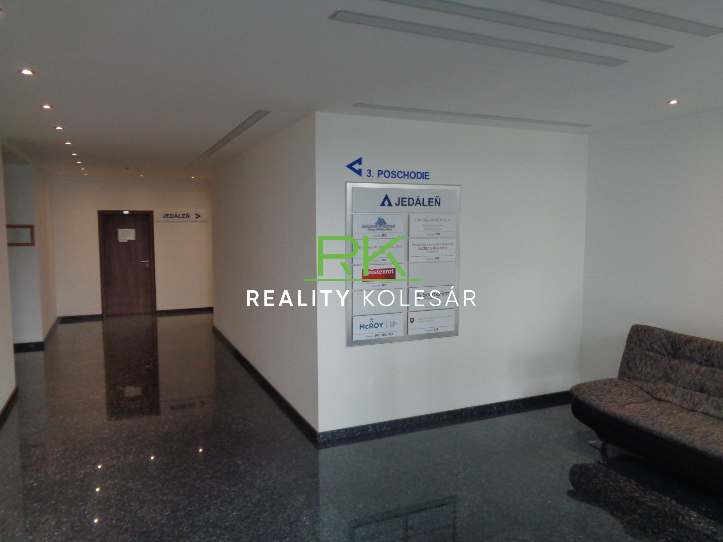 Reality Kolesár má na prenájom kancelársky priestor 42 m2 v centre mesta na Mlynskej ulici v OC Gastrodom. Administratívne priestory sa nachádzajú na 2. poschodí majú žalúzie, kuchynku, prietokový ohrievač, laminátovú podlahu, kazetový strop, LED stropné osvetlenie internet. Cena : 14 ,-€/ m2 bez DPH za mesiac, 588,-€/ mesačne bez DPH.