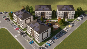 Technické parametre a vybavenie: Byty sú navrhnuté vo vysokom technickom štandarde s dôrazom na úspornosť. Obvodový plášť z tvárnic YTONG (380 mm) je zateplený minerálnou vlnou (120 mm), okná sú vybavené 6/7-komorovým profilom s izolačným trojsklom a o tepelný komfort sa stará podlahové vykurovanie napojené na centrálnu kotolňu s tepelným čerpadlom a fotovoltikou. Každý dom je bezbariérový a vybavený moderným výťahom. Pre každý byt je v projekte započítané jedno parkovacie miesto.